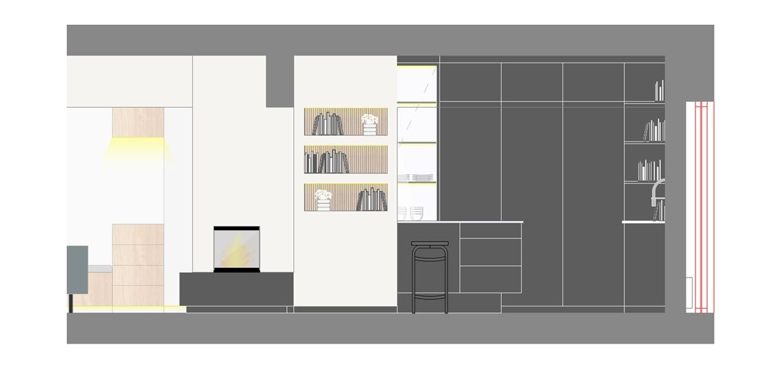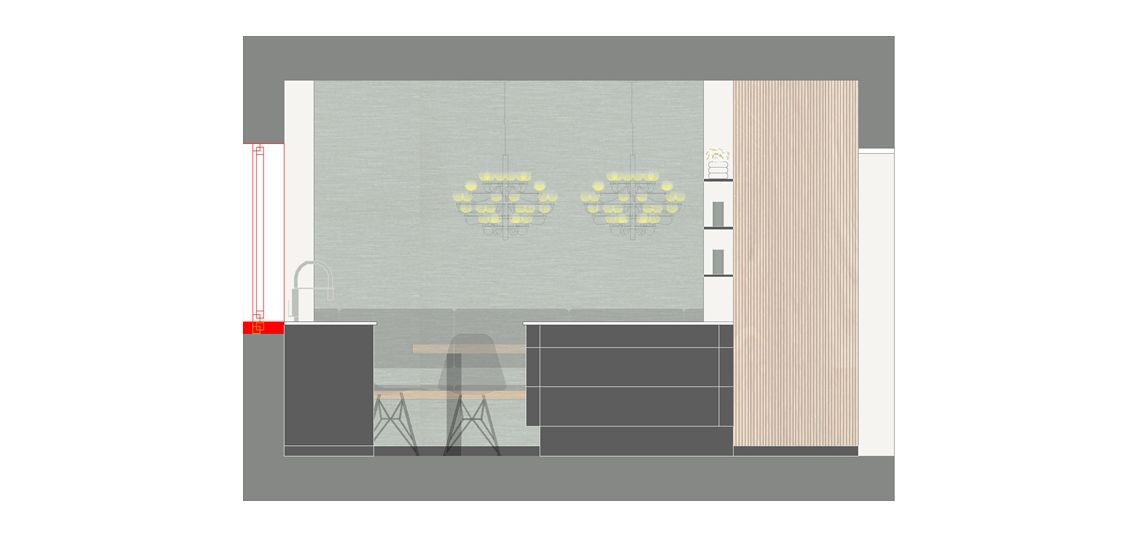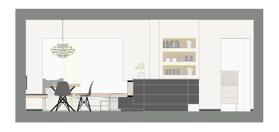 Dreh- und Angelpunkt ist der vierzügige Altbau- Kaminschacht im Bestand.