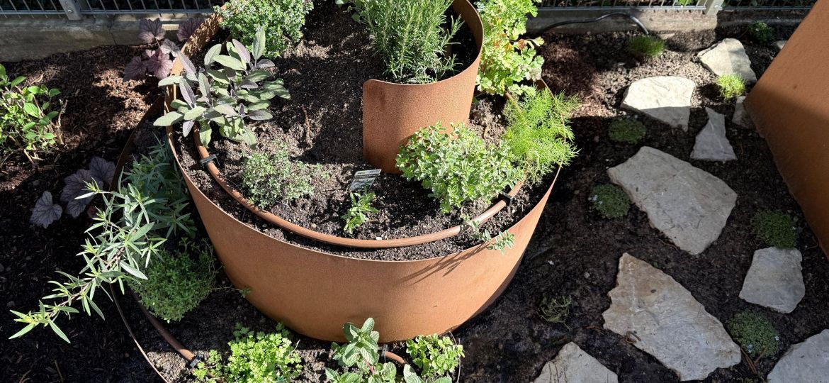 – Kräuterspirale – Schnittlauch, Bärlauch, Thymian und Minze